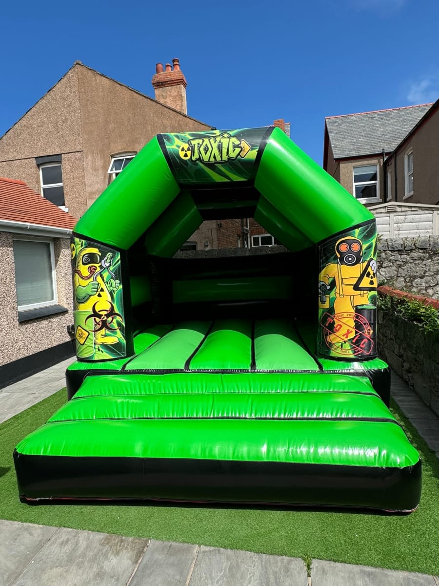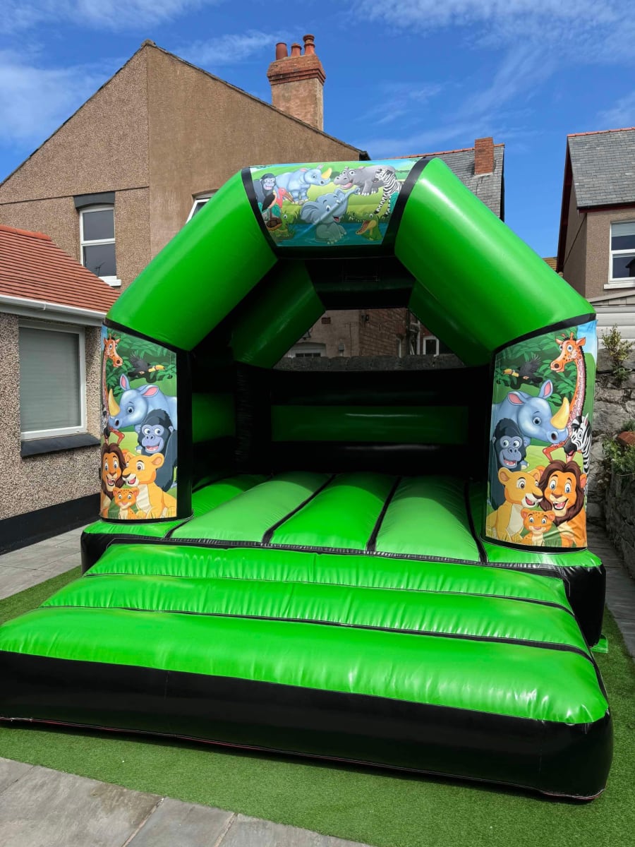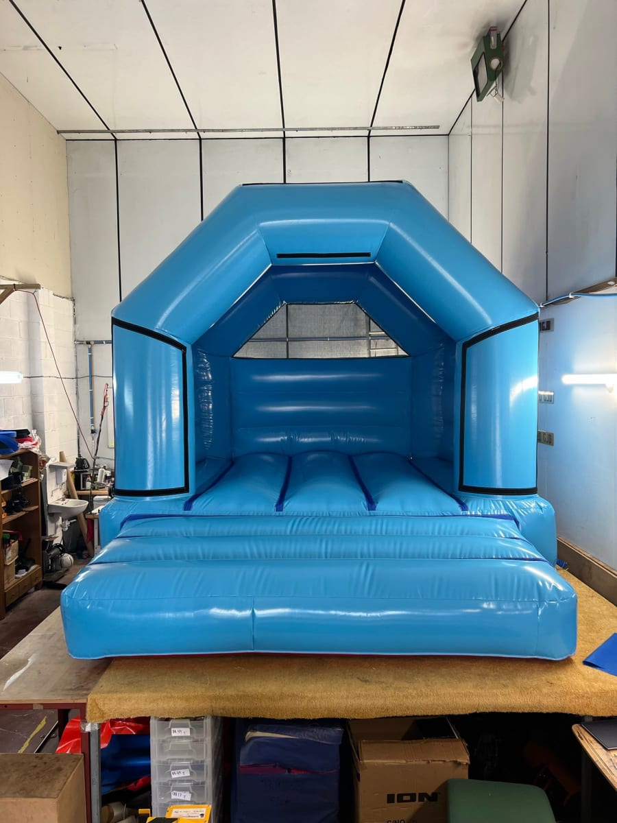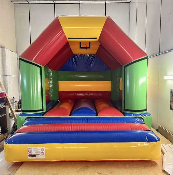 This A Frame bouncy castle can be manufactured in a variety of colours (swatches and colour charts available on request). This standard model can be manufactured in many sizes from a small 10 x 12 ft up to an impressive 20 x 20 ft.