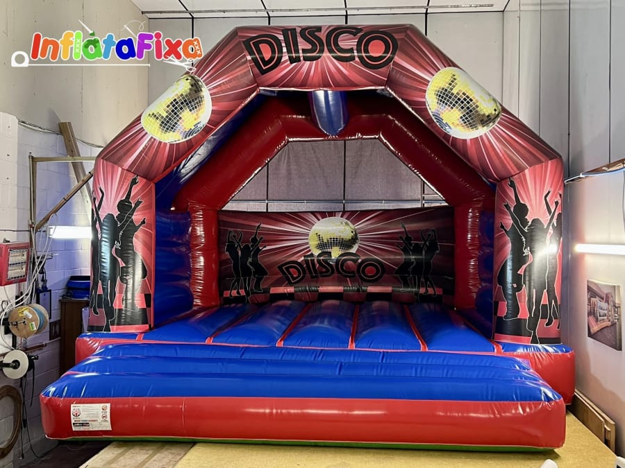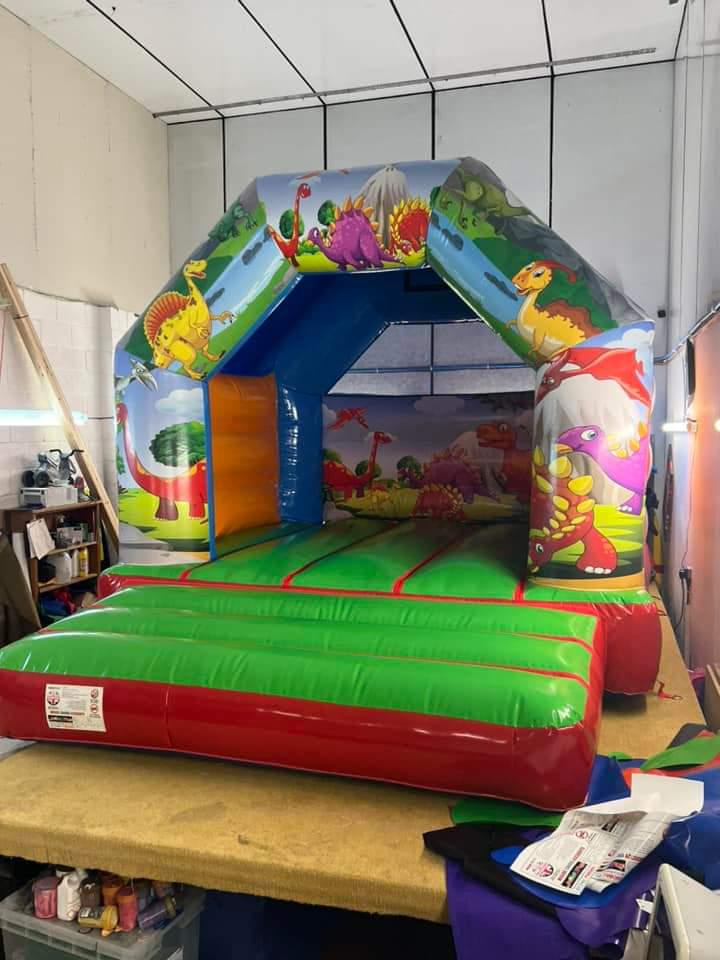 This A Frame full artwork bouncy castle can be manufactured in a variety of colours (swatches and colour charts available on request). This model can be manufactured in many sizes from a small 10 x 12 ft up to an impressive 20 x 20 ft.