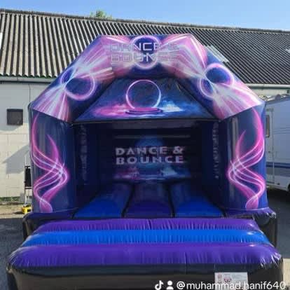 This A Frame full artwork bouncy castle can be manufactured in a variety of colours (swatches and colour charts available on request). This model can be manufactured in many sizes from a small 10 x 12 ft up to an impressive 20 x 20 ft.